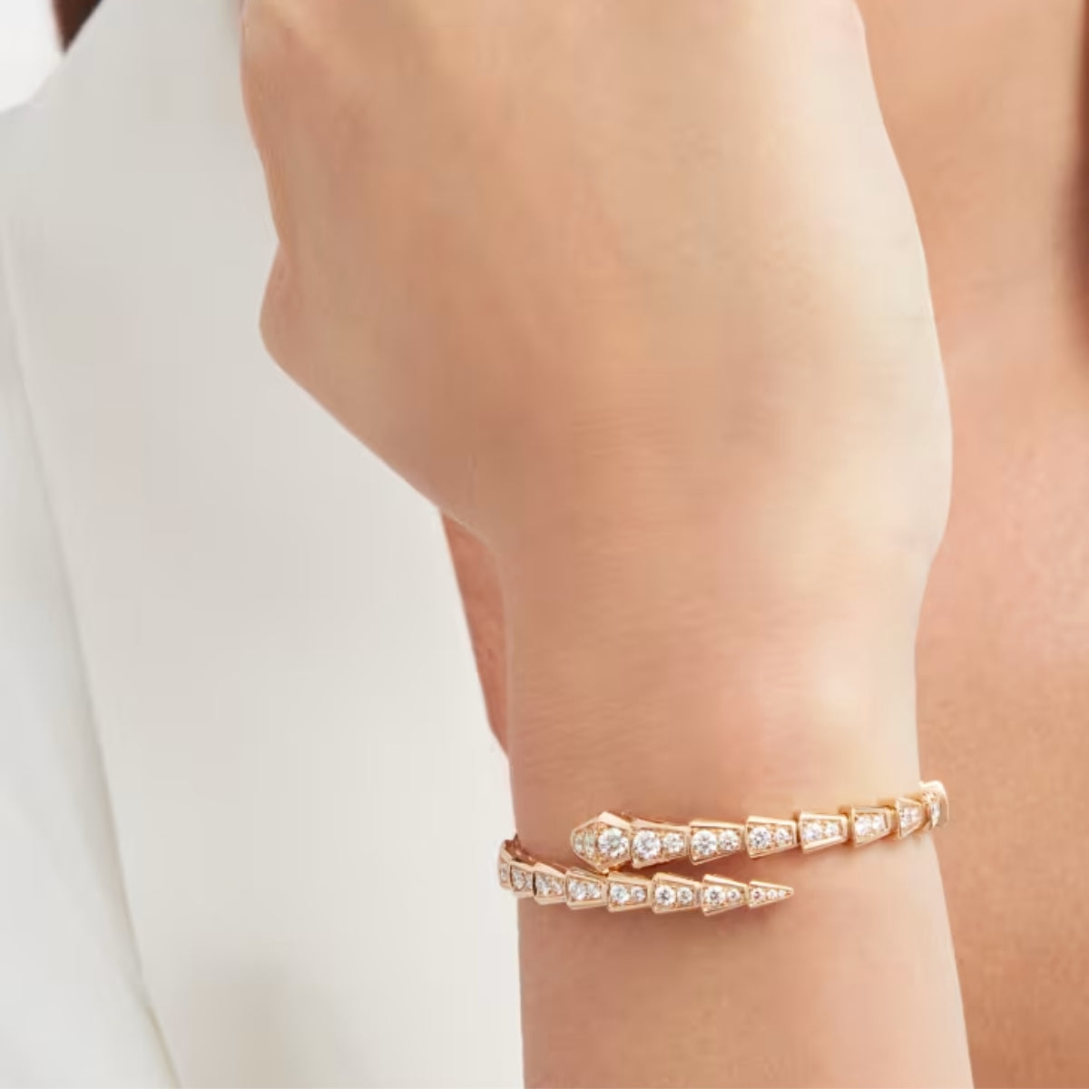 La Snake Bracelet V-Gold combina elegancia serpenteante con un brillo extremo gracias a sus gemas de zirconia de 2 mm, ofreciendo destellos intensos y sofisticados. Su diseño envolvente tipo “snake” se ajusta a la muñeca con fluidez, elevando cualquier look con lujo moderno.
